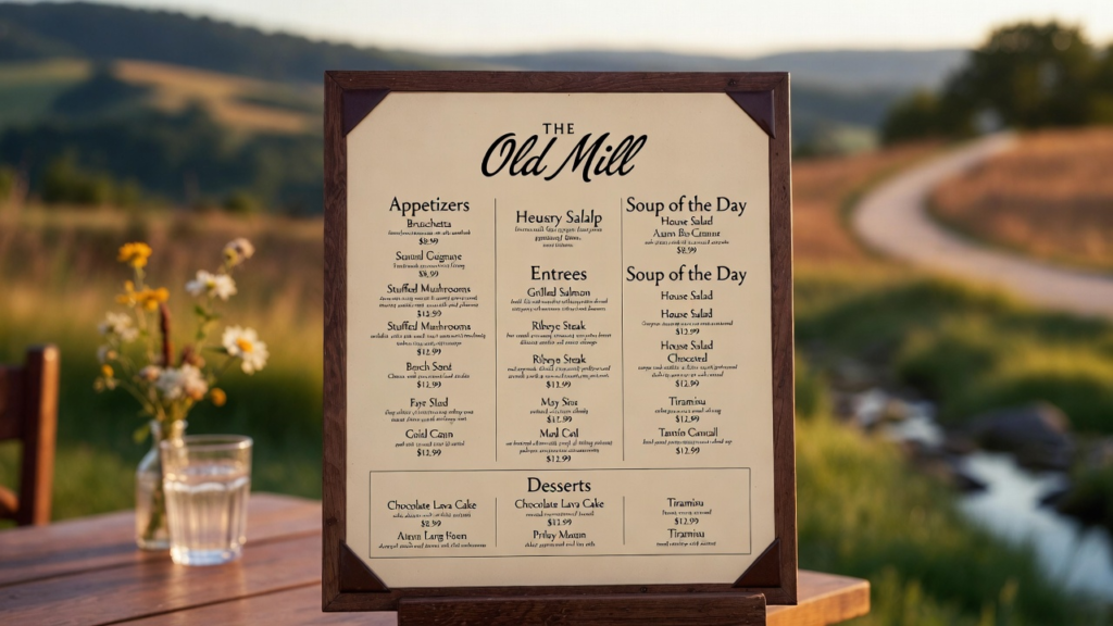 The old mill restaurant menu is full of warm and tasty food that feels like home. Every bite is made with care, just like how grandma used to cook. People love the soft biscuits, crispy chicken, and sweet pies. The menu has food that makes you smile and feel happy inside. When you walk in, the smell of fresh food welcomes you like a hug. The meals are big, and they fill your tummy in the best way. Many people come back again because they feel cozy and loved here. The food is not too fancy, but it’s made with love. That’s why the old mill restaurant menu is so comforting and very special to so many people.